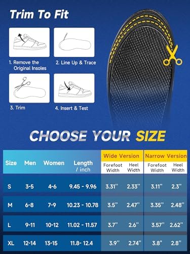 【1 Pair & Cut to Fit】 The rigid insoles are suitable for all shoes with removable liners, including work boots, sneakers, hiking boots, casual shoes, tennis shoes, basketball shoes, and more. Lightweight and thin fits most slightly wider shoes and can be quickly transferred to a different shoe for increased use, giving old shoes a new lease on life. Replacement insoles are available in wide and narrow versions