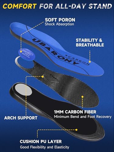 【Daily Comfort and Stability】 Ubarony carbon fiber insoles are designed with daily comfort and stability in mind, providing moderate cushioning and support through orthotic walking, effectively relieving foot and leg fatigue and alleviating foot pain, such as turf toe, plantar fasciitis, Hallux Rigidus/Limitus, bunions, arthritis, Morton’s toe, Achilles tendonitis, etc