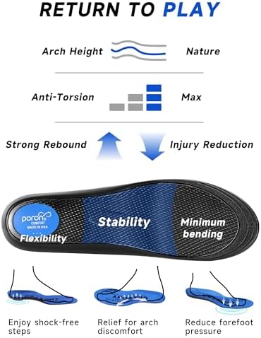 【Return to Play & Foot Recovery】Special arch design of the performance insole regulates the body by supporting the subtalar joint to prevent excessive pronation/pronation. Heel cup construction provides maximum shock absorption and support to protect the ankle. Improves your gait and posture, reduces fatigue during exercise, and supports your return to the ground and foot recovery