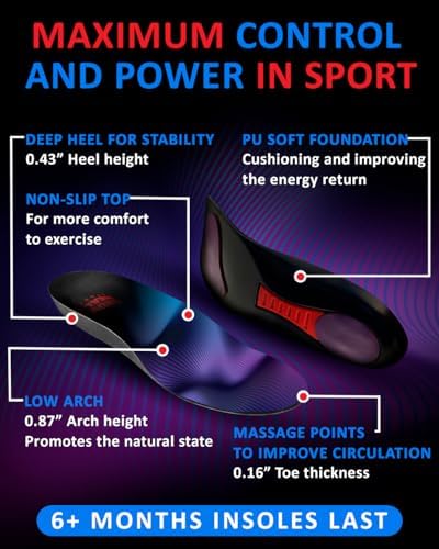 🌟INJURY PREVENTION: Sport shoe inserts reduce stress on joints, knees, and lower back. Minimize the risk of common injuries such as strains, fractures, dislocations, tendonitis, shin splints, and prevent slippage causing blisters.