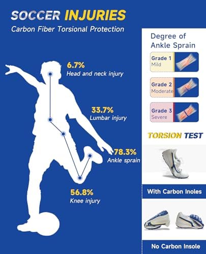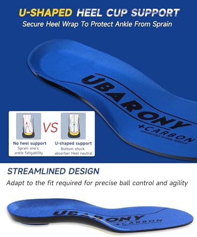 【Comfort & Performance Combined】The soccer insole curved carbon plate is designed to provide moderate arch support to maintain a balance between support and flexibility. the U-shaped heel cup increases freedom of movement and flexibility, and the heel Poron absorbs the shock of each step, distributes pressure evenly from heel to toe, relieves pressure on joints, tendons, and ligaments, and keeps feet flexible for a long time. Turf cleat insoles provide better ball control and smoother movements