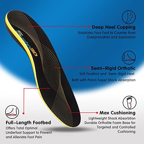 【Pain Relief Shoe Insoles】Sushn3D plantar fasciitis insoles feature arch support and a deep U-shaped heel cup to keep feet properly positioned to help to realign your whole body and reduce foot pressure. The gel orthotic insoles can relieve foot pain caused by all-day standing and help ease stress and pain from a heel spur, foot flat feet, valgus, plantar fasciitis, fallen arch, bunions, supination, arthritis, Achilles tendonitis, and ball of Foot pain.