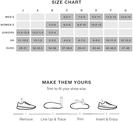 Trim to Fit: Superfeet insoles are made to be trimmed to fit your shoes and boots; follow cutting instructions before use, and if you’re between sizes, size up and trim down to fit