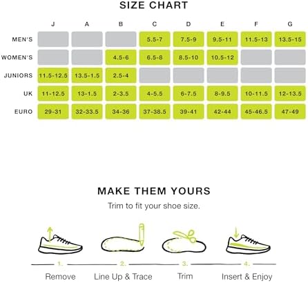Trim to Fit: Superfeet insoles are made to be trimmed to fit your shoes and boots; follow cutting instructions before use, and if you’re between sizes, size up and trim down to fit
