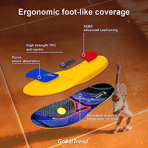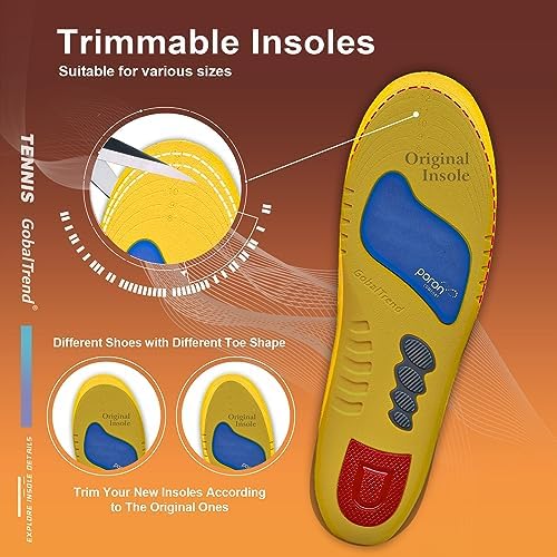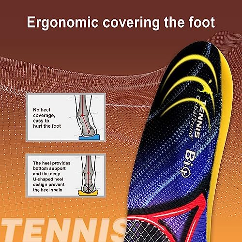 [ARCH SUPPORT]: Specifically designed for arch support, our tennis high arch insoles for men provide exact support for your feet. orthotics for plantar fasciitis not only alleviate foot pain and plantar fasciitis but also help prevent foot injuries during physical activities, boot insoles ensuring stability and augment overall comfort and performance.