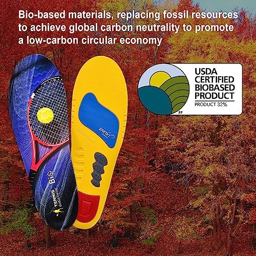[EVIRONMENTALLY FRIENDLY AND SUSTAINANLE]: Our tennis metatarsalgia insoles are made with bio-based materials, replacing fossil resources, to achieve global carbon neutrality and promote a low-carbon circular economy. Through green consumption and high-value recycling, we are focus to creating more sustainable possibilities, reusing resources, and reducing pollution and waste. By choosing our arch support inserts, make a positive contribution to the environment.