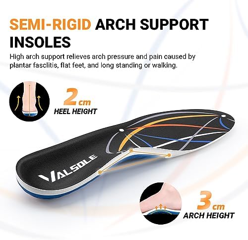 Valsole Plantar Fasciitis Insoles High Arch Support Inserts Orthotic Insoles for Flat Feet Women Men Heavy Duty Support Work Boots Insoles for Standing All Day (M:280mm(Men8-9.5/Women9-10.5), Black)